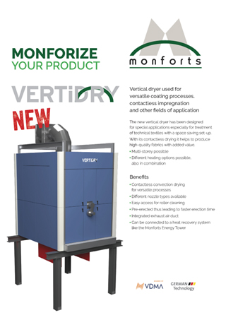 Produktbroschüre: Die neueste Monforts Entwicklung zum kontaktlosen Vortrocknen technischer Textilien – ideal für anspruchsvolle Beschichtungsprozesse oder berührungsfreie Imprägnierungen.
