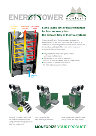 Produktbroschüre: Der freistehende Luft/Luft-Wärmetauscher ermöglicht eine effiziente Wärmerückgewinnung aus dem Abluftstrom thermischer Anlagen – auch zur Nachrüstung geeignet.